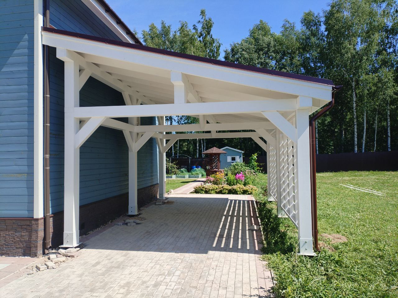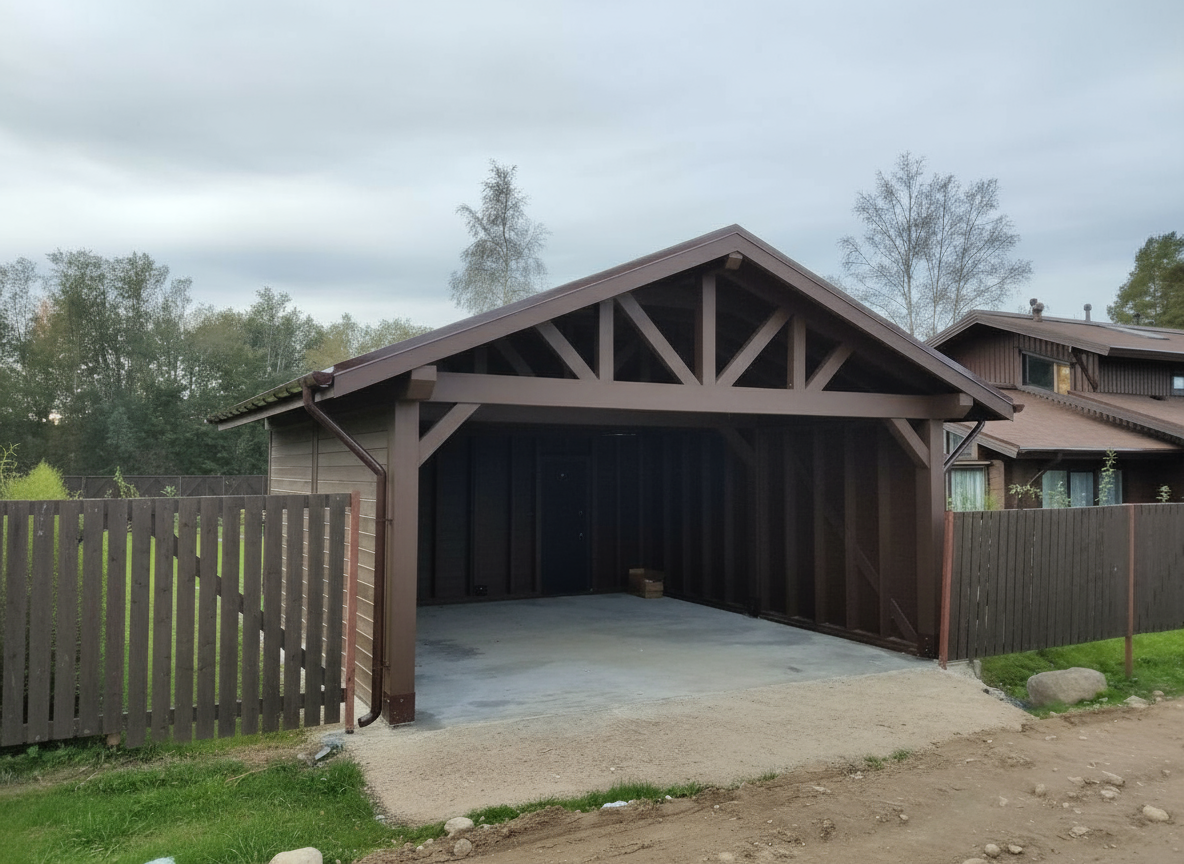 • Навес к частному дому для автомобиля ГРИМСТАД
